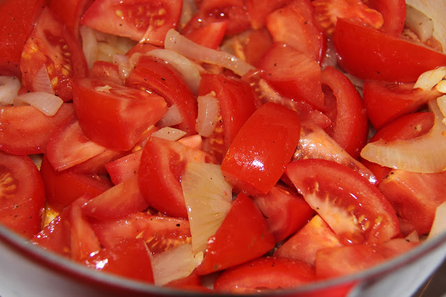10 large tomatoes/12 medium, tops sliced off then sliced in eighths
